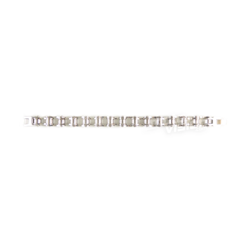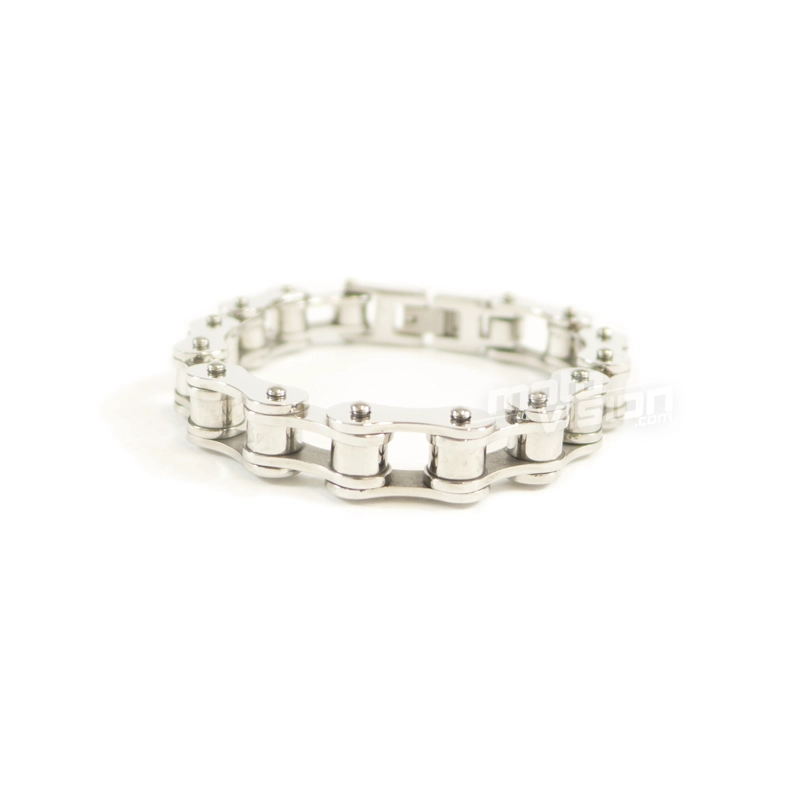 In Form einer Motorradkette , dieses Armband in Edelstahl bietet einen Hauch von Luxus. Dieser Schmuck für Männer und Frauen zeigten ein reiches zeitgenössisches Design, ist der Verschluss so konzipiert, leicht zu handhaben .