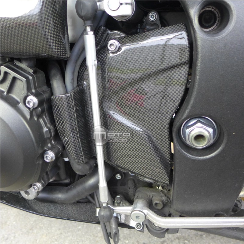 Ritzelabdeckung Carbon Yamaha YZF R1 2009-2014, geliefert ohne Schrauben oder andere Befestigungen. Die Bohrungen sind bereits an den Motorradverkleidungen aus Carbon angebracht. Die Teile sind mit glänzendem oder mattem Lack erhältlich.