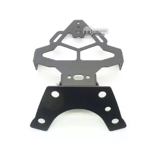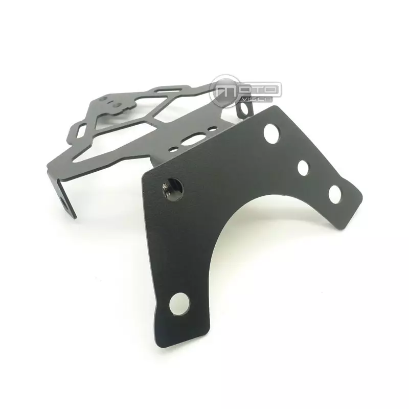 Aluminium Kennzeichenhalter mit speziell Adapter für das Motorrad, Montageteile gehören auch zu diesem Set.