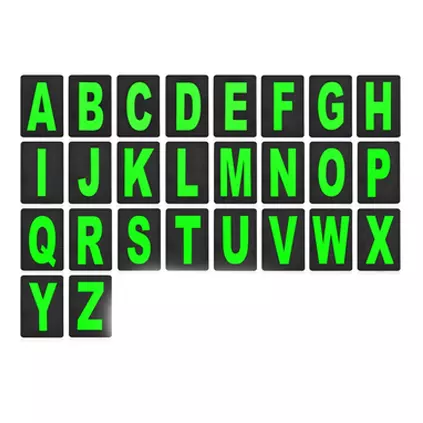 Satz von 26 Buchstaben aus hoch sichtbarem Kunststoff. Passend für die kleine 100x75cm Pinnwand Moto Vision, in verschiedenen Farben erhältlich.