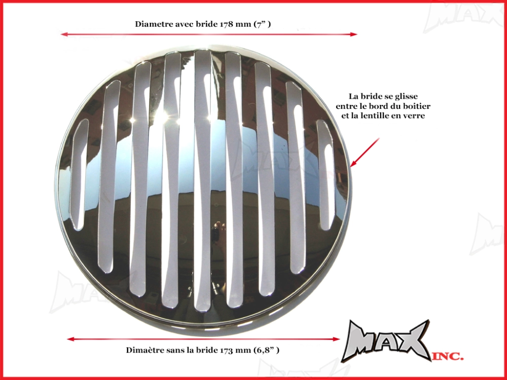 THIS PRISON BAR STYLE HEADLIGHT COVER IS A VERY COOL ADD ON AND MOUNTS DIRECTLY ONTO YOUR EXISTING 7 INCH HEADLIGHT. INSTALLATION IS SIMPLE AS THEY HAVE A VERY SMALL LIP THAT FITS BETWEEN THE HEADLIGHT RETAINING RING AND THE HEADLIGHT LENSE.