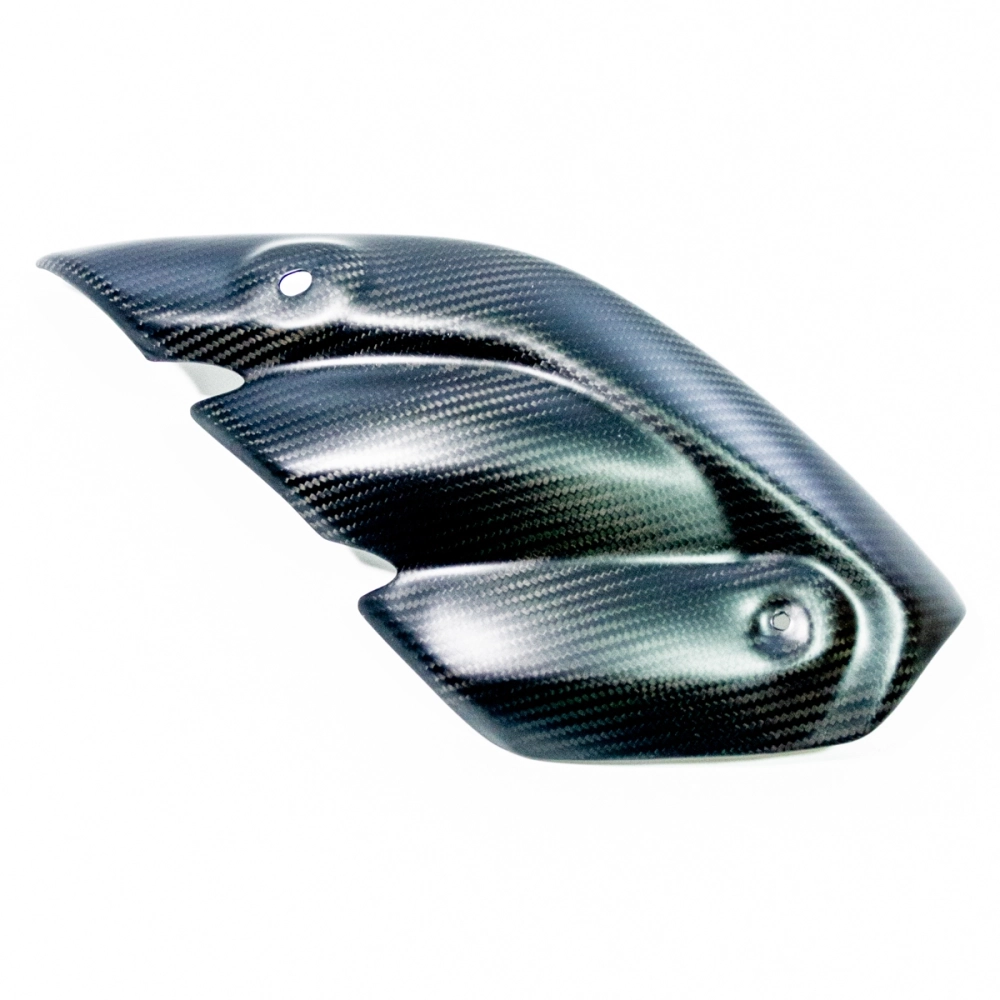 Carbon AuspuffSchutz MV Agusta Brutale 800, geliefert ohne Schrauben oder andere Befestigungen. Die Bohrungen sind bereits an den Motorradverkleidungen aus Carbon angebracht. Die Teile sind mit glänzendem oder mattem Lack erhältlich.