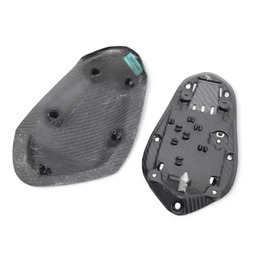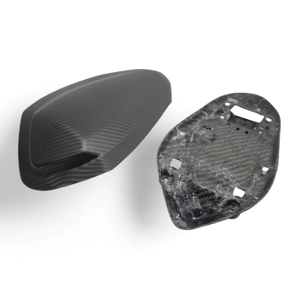 Die Teile bestehen aus echtem Karbon, das aus einer äußeren Karbonschicht und zwei inneren Glasfaserschichten besteht.