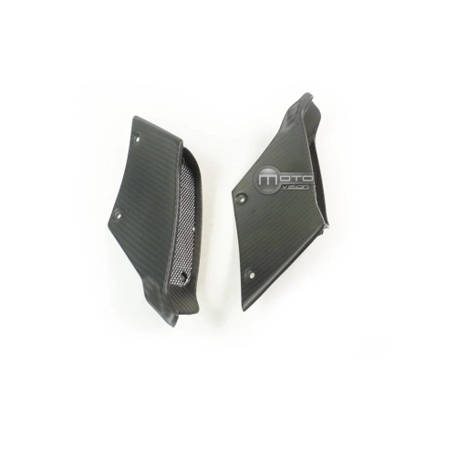 Carbon LuftKanal Eingang Ducati Diavel 2014, geliefert ohne Schrauben oder andere Befestigungen. Die Bohrungen sind bereits an den Motorradverkleidungen aus Carbon angebracht. Die Teile sind mit glänzendem oder mattem Lack erhältlich.