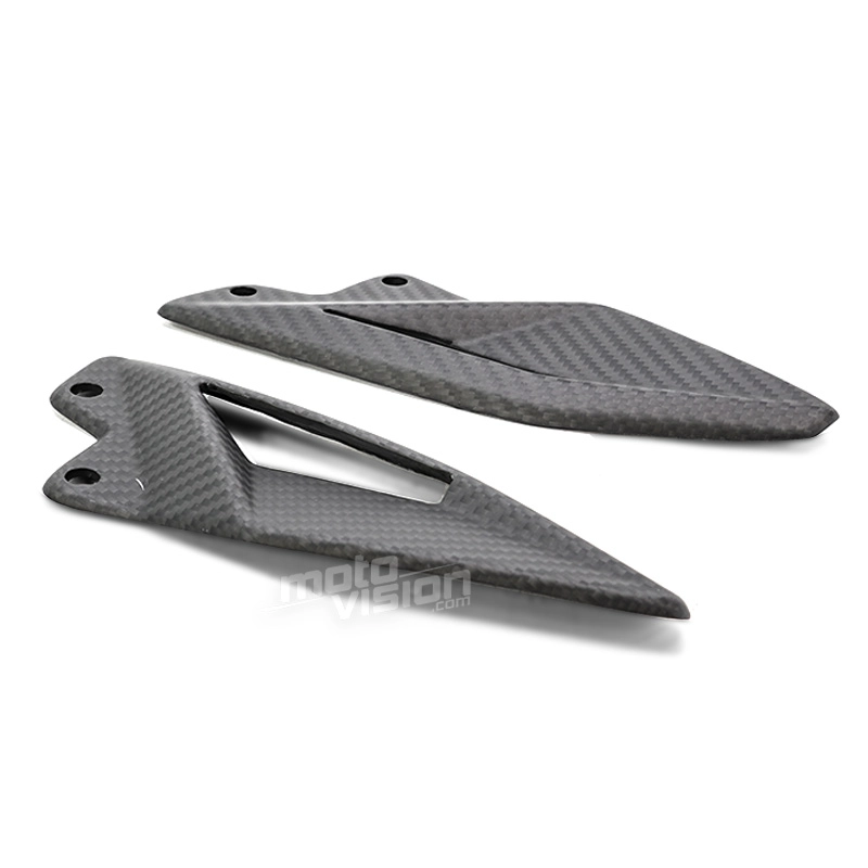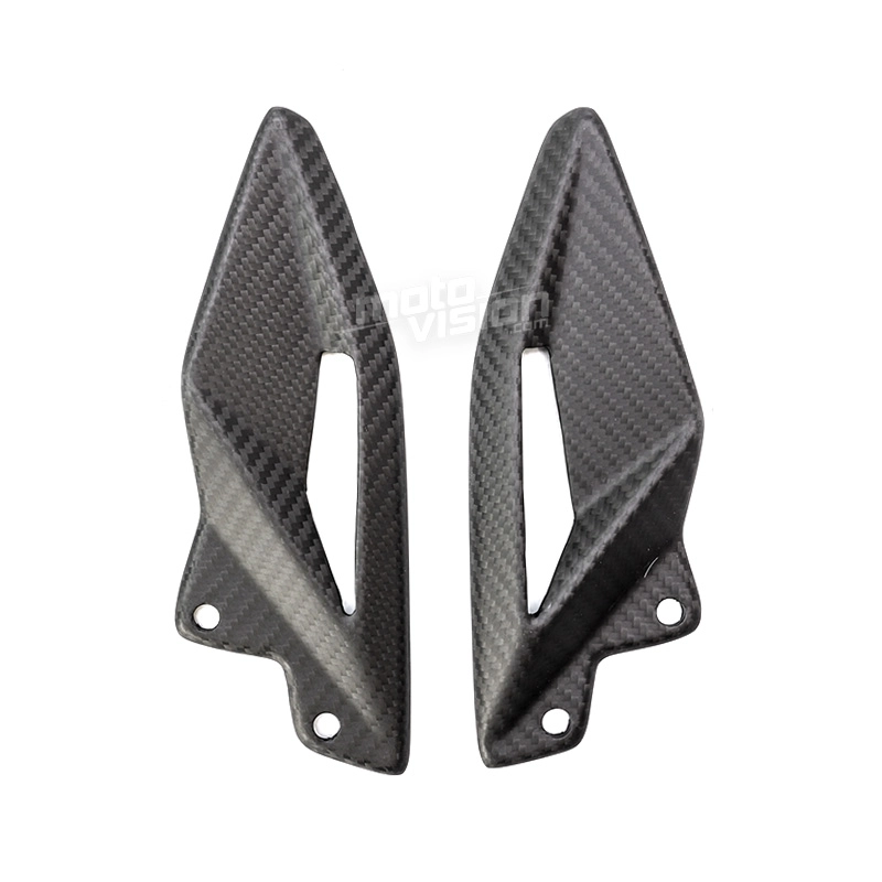 Carbon Fersenschutz Mat Triumph 765/800/1050 Street Triple R/S/RS 2017-2022+ zur direkten Montage an den originalen Befestigungspunkten Ihres Motorrads als Ersatz für die originale Verkleidung. Die Carbonteile werden ohne Schrauben geliefert.