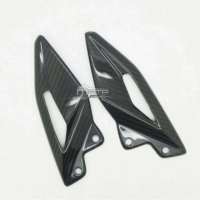 Carbon Fersenschutz Mat Triumph 765/800/1050 Street Triple R/S/RS 2017-.. aus echtem Carbon, zur direkten Montage an Ihrer Motorrad. Diese Verkleidung aus Carbon bietet Ihnen mehrere Vorteile: