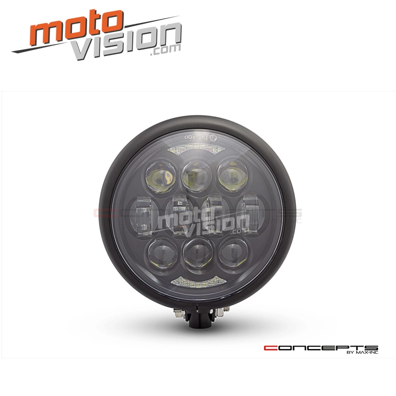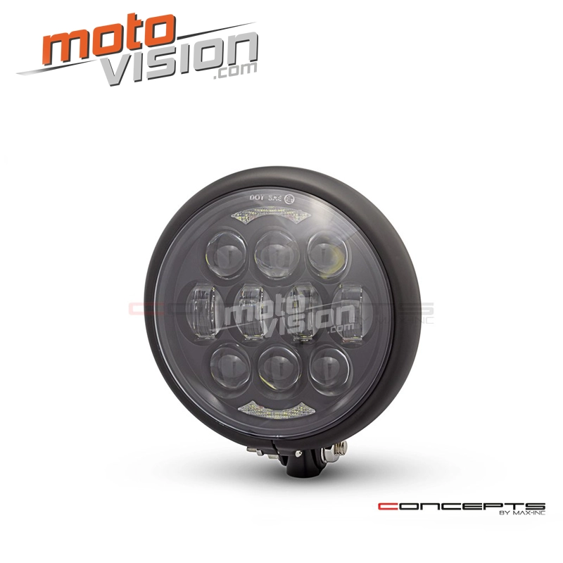 This Universal Headlight combines a Classic Bates Style Metal Housing with a modern LED insert. It has a universal bottom mount which can be mounted to just about any motorcycle. Super bright and super cool.