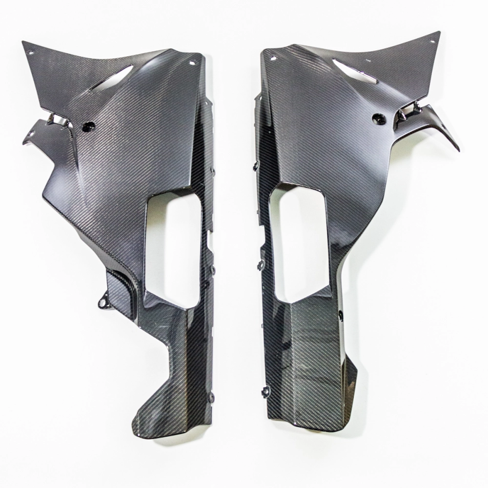 Carbon Bugspoiler Glanzend BMW S1000RR 2015 - 2016, geliefert ohne Schrauben oder andere Befestigungen. Die Bohrungen sind bereits an den Motorradverkleidungen aus Carbon angebracht. Die Teile sind mit glänzendem oder mattem Lack erhältlich.