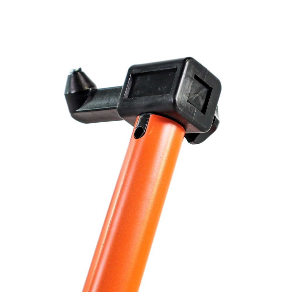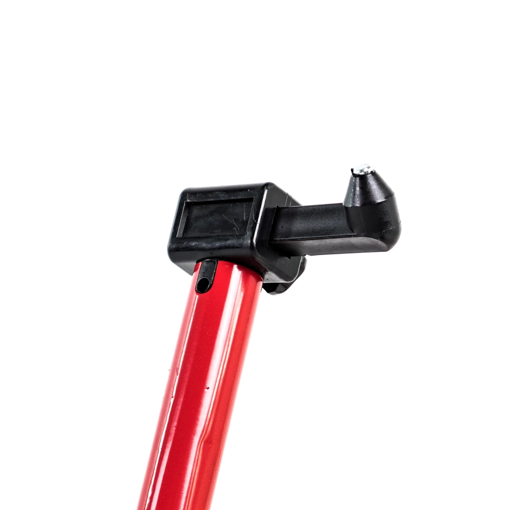 Vorderer Ständer in einem Block unter der Gabel mit Kufen, die unter den Gabelholmen angebracht werden. Seine Passform ist mithilfe der Feder und des Sperrstifts einstellbar.