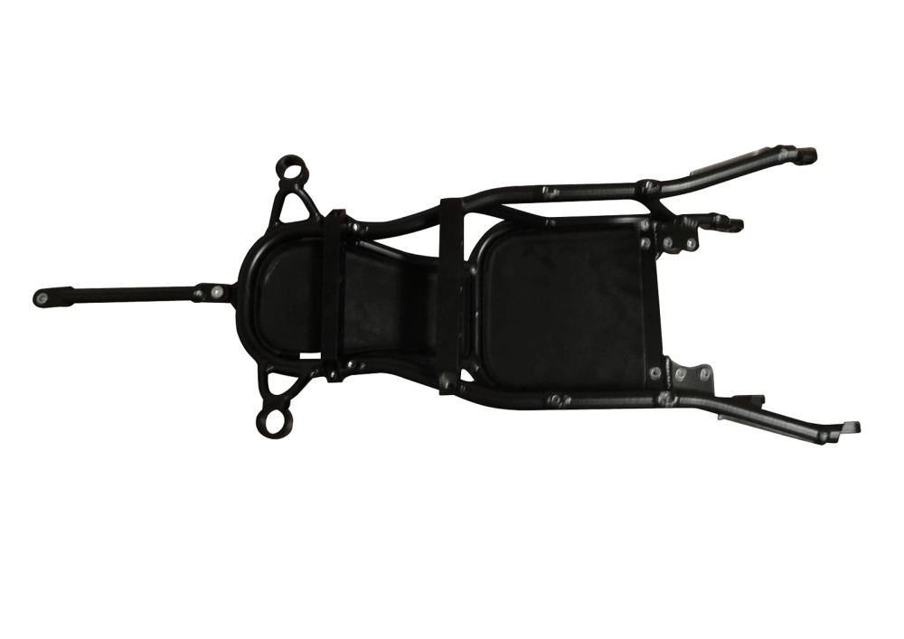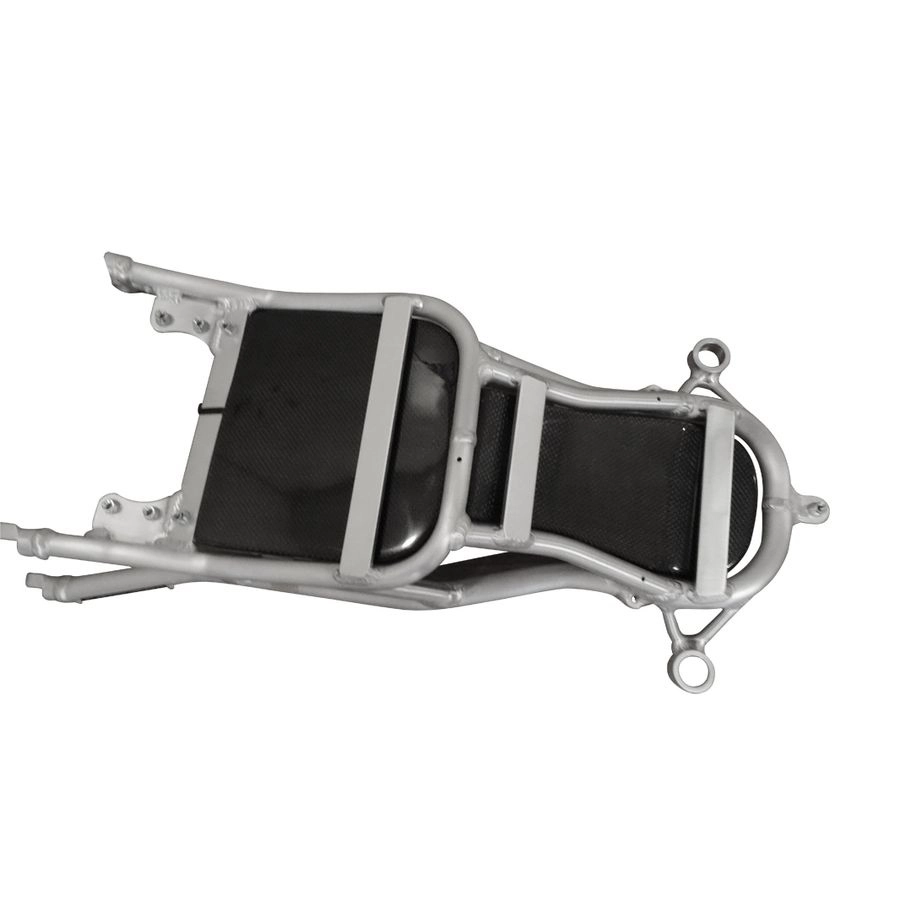 Dieser Rahmen zeigt die Originalbefestigungspunkte, es ist so konzipiert, mit einer speziellen Aluminium vereint Leichtigkeit, Kraft und Flexibilität. Die Schweißnähte sind für zusätzliche Festigkeit verstärkt. Zusätzlich ist es einfach konzipiert korrigieren wenn nötig zu sein.