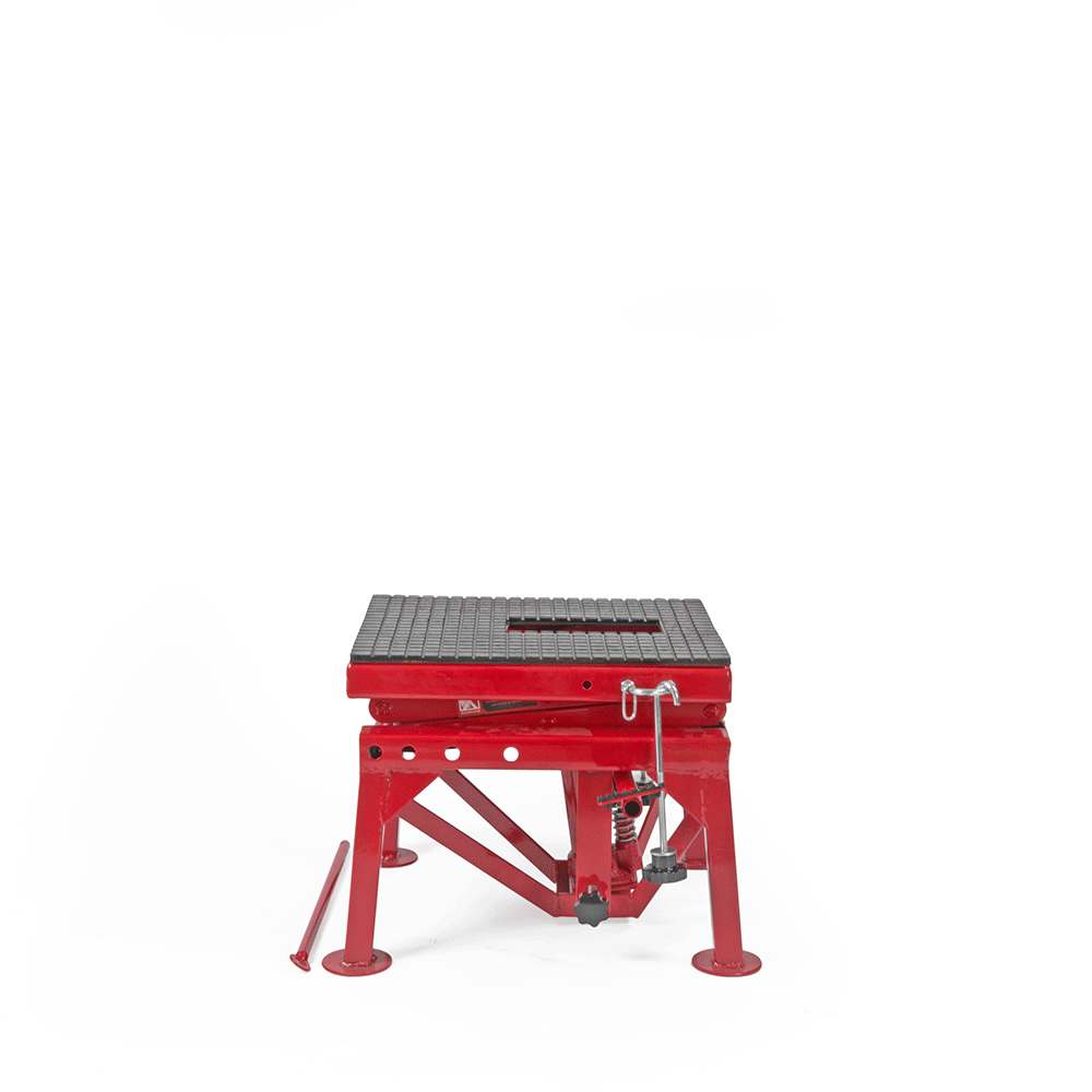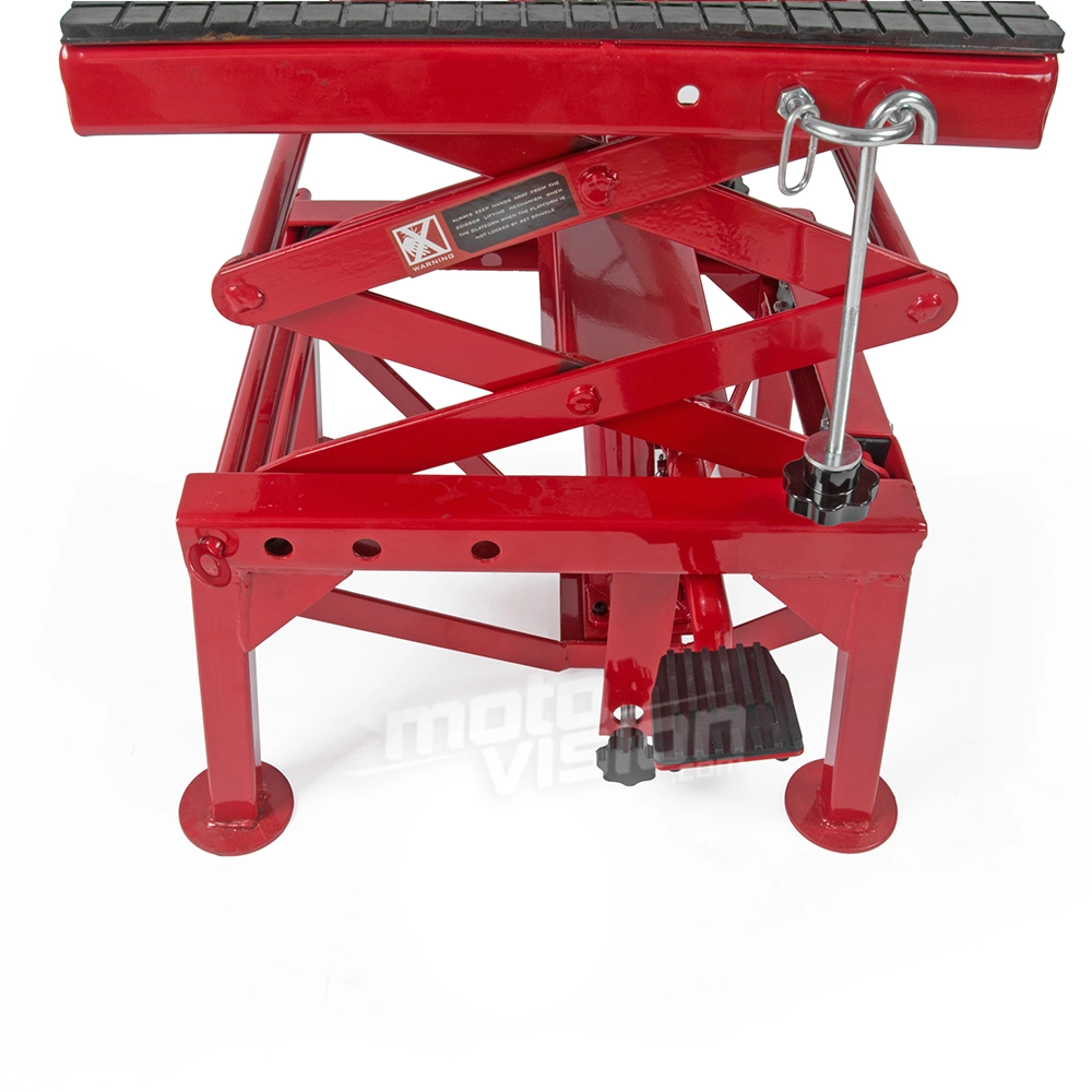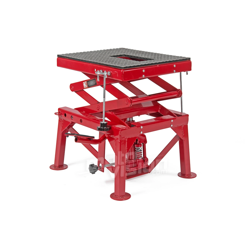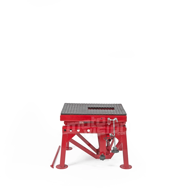 Hebebühne für Ihr Motorrad. Die Ablage ist zum Schutz Ihres Motorrads mit Gummi überzogen und die Federn sichern Ihr Motorrad bei Wartung und Reparatur.