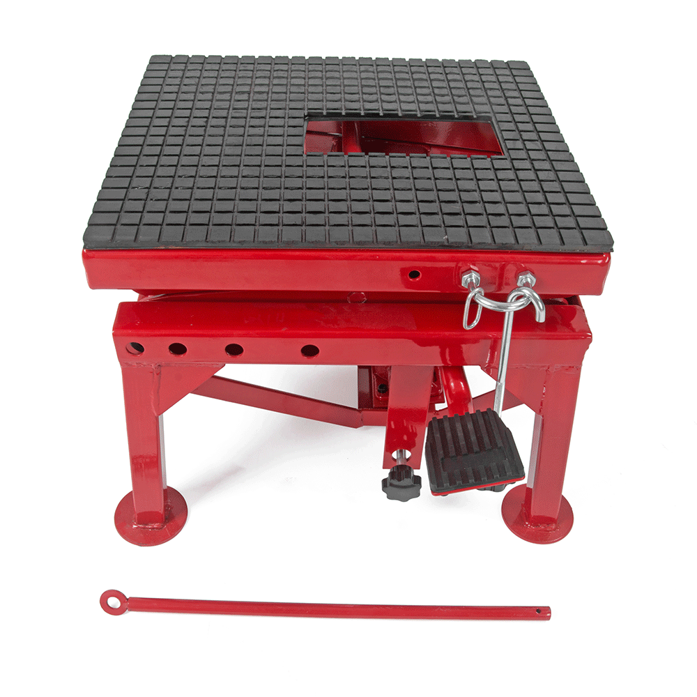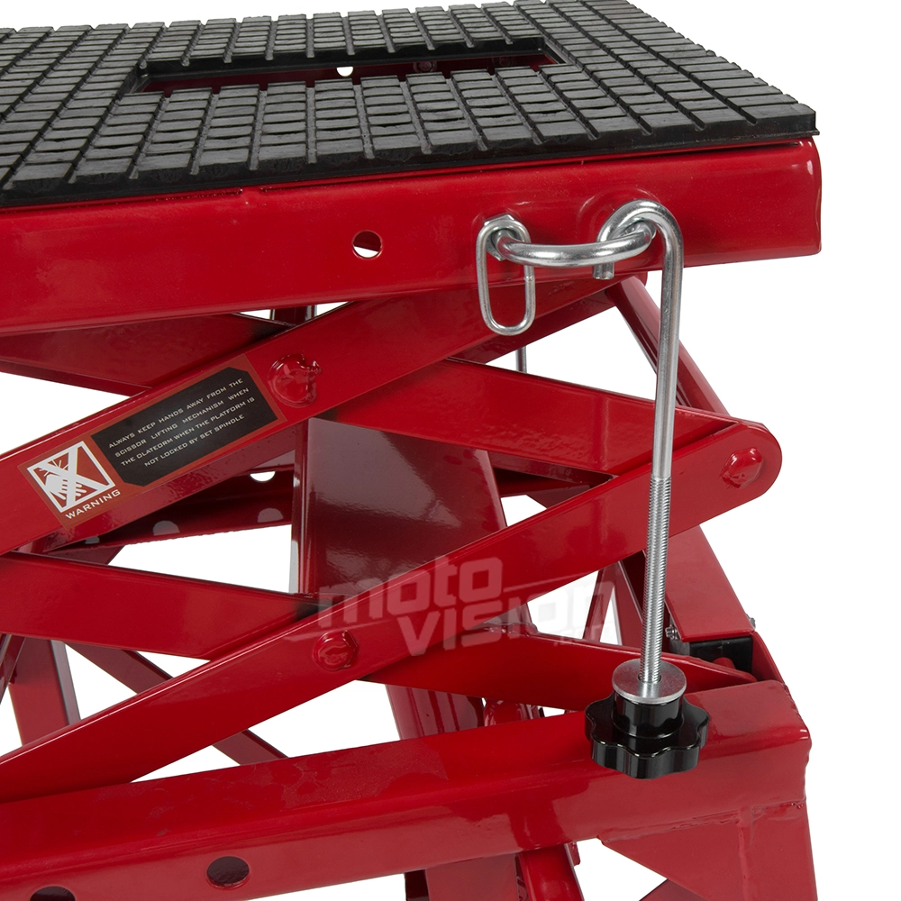 Mit dieser Hebebühne können Sie Ihr Motorrad dank der mitgelieferten Kurbel mühelos anheben.