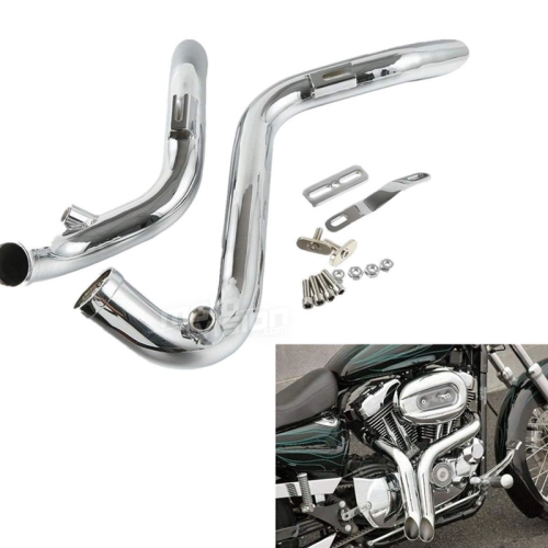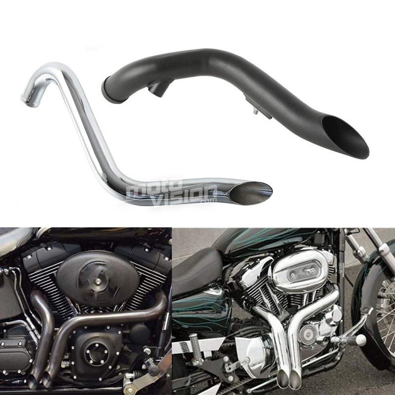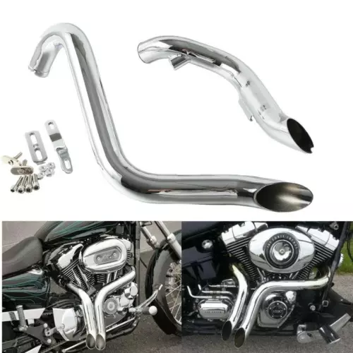 Ein Paar Auspuffanlagen für Harley Davidson Softail-Sportster von 1986 bis 2013. Mit ihren verstellbaren Halterungen lassen sich diese Auspuffanlagen leicht an Ihrem Motorrad anbringen und verleihen ihm einen einzigartigen Stil und Klang.