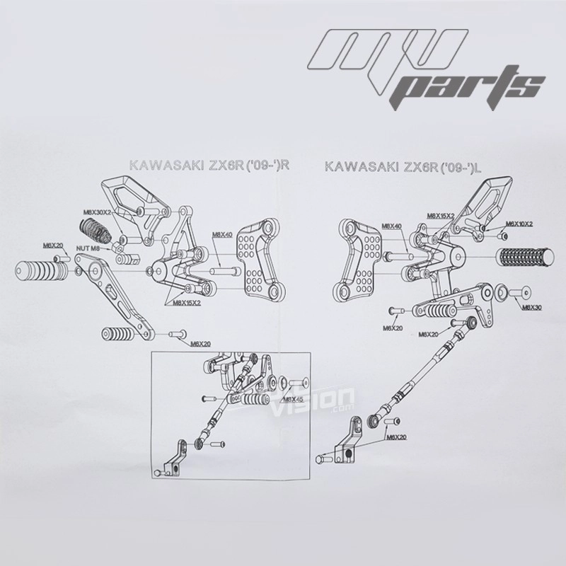 Verstellbar Fussrastenanlage Moto-Tron Racing Kawasaki ZX6R 2009-