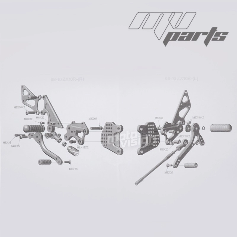 Verstellbar Fussrastenanlage Moto-Tron Racing Kawasaki ZX10R 2008-2010