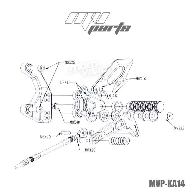 Verstellbar Fussrastenanlage Moto-Tron Racing Kawasaki Z900 2017-