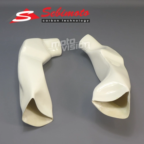 Sebimoto GFK Luftkanal Honda CBR600RR 2003-2004 aus geflochtenem Glasfasergewebe mit Kevlar-Verstärkungen. Das Produkt lässt sich dank der Markierung der Bohrstellen und einer guten Verarbeitung der Verkleidung leicht an Ihrem Motorrad anbringen.