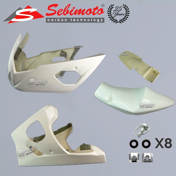 Sebimoto Komplett Race Verkleidung Suzuki GSXR 600/750 2004-2005 aus geflochtenem Glasfasergewebe mit Kevlar-Verstärkungen. Das Produkt lässt sich dank der Markierung der Bohrstellen und einer guten Verarbeitung der Verkleidung leicht an Ihrem Motorrad anbringen.