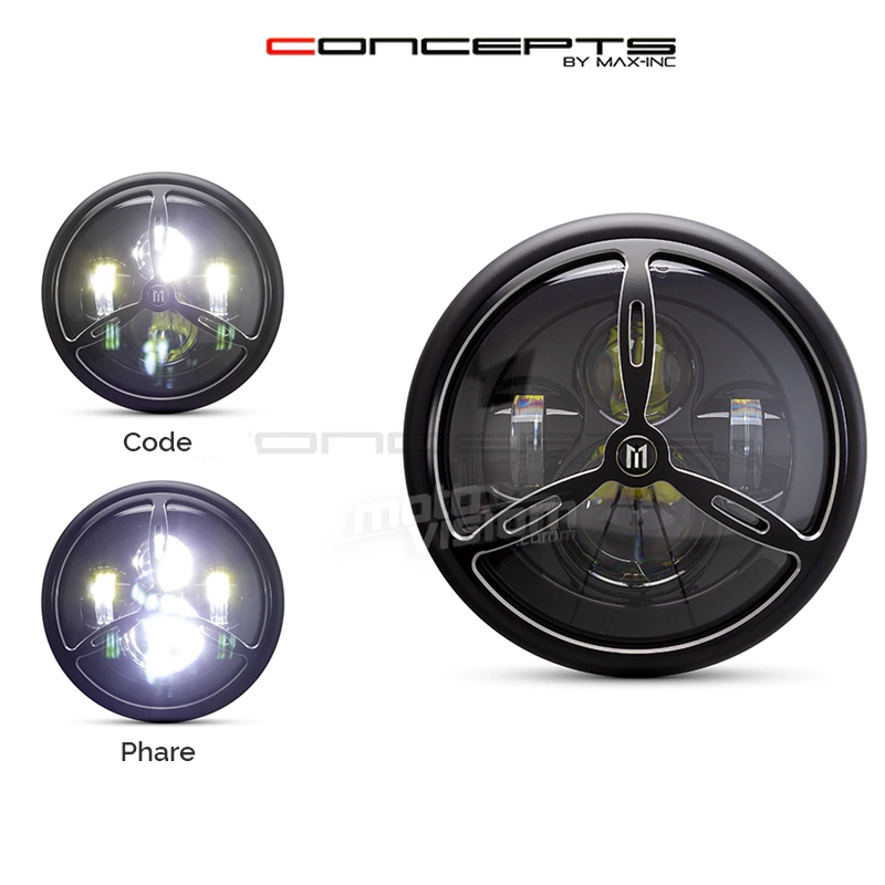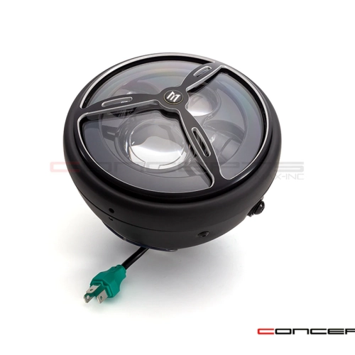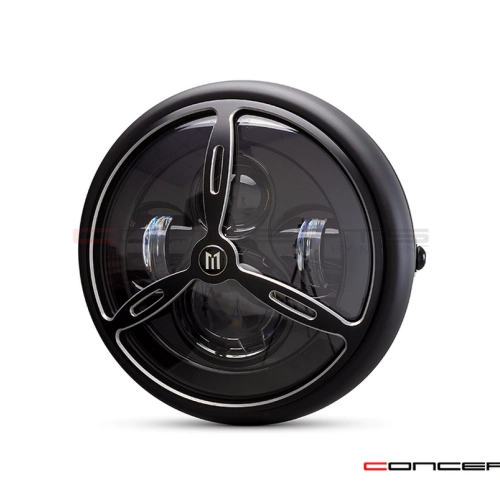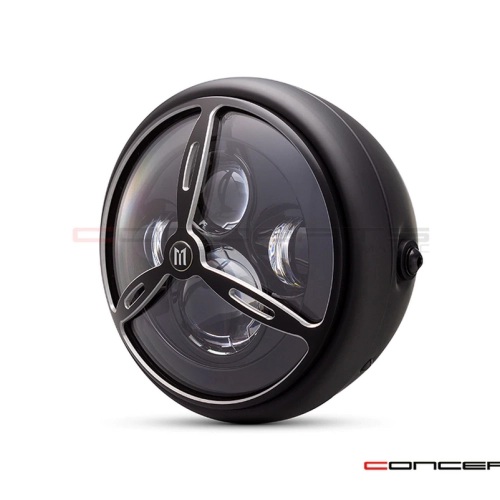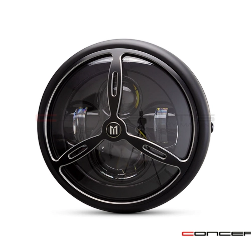 Hochwertiger und superheller Scheinwerfer im klassischen Stil mit seitlicher Montage, LED-Einsatz mit mehreren Projektoren und CNC-gefräster Tri-Deco-Grill-Designabdeckung aus Aluminium. Dieser Scheinwerfer eignet sich für pingelige Käufer, die ein Qualitätsprodukt suchen.