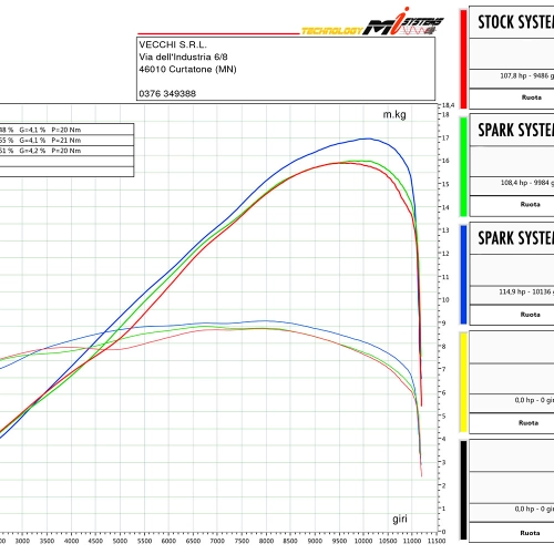 Alle Spark-Auspuffanlagen sind lärmzertifiziert und erfüllen die von der FFM auferlegten Lärmstandards. Die Suche nach der besten Klangqualität ist eines der Hauptziele der Marke, wobei die geltenden Normen durch die Verwendung von Rohstoffen höchster Qualität eingehalten werden.