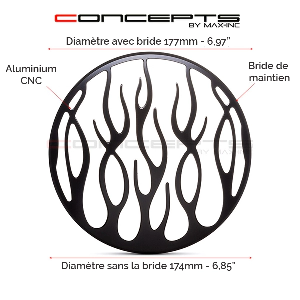 Scheinwerfer Grill Flame Grill Design 7" Aluminium CNC Schwarz