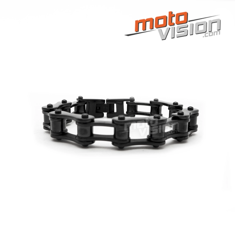 In Form einer Motorradkette , dieses Armband in Edelstahl bietet einen Hauch von Luxus. Dieser Schmuck für Männer und Frauen zeigten ein reiches zeitgenössisches Design, ist der Verschluss so konzipiert, leicht zu handhaben .