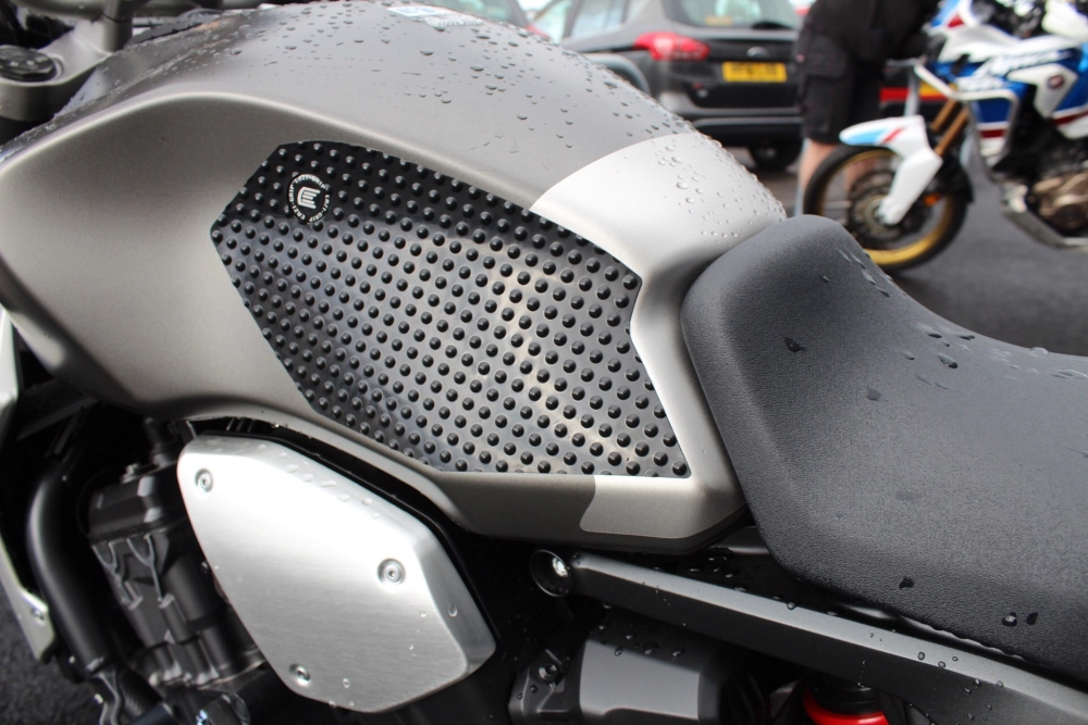 Selbstklebender, rutschfester Motorrad-Tankgrip aus der Evo-Reihe von Eazi-grip, speziell für Honda CB1000R 2018 vorgeschnitten. Das Produkt wurde entwickelt, um Ihnen eine bessere Kontrolle über Ihr Motorrad beim Beschleunigen oder Bremsen zu geben und gleichzeitig Ihre Ermüdung zu reduzieren.