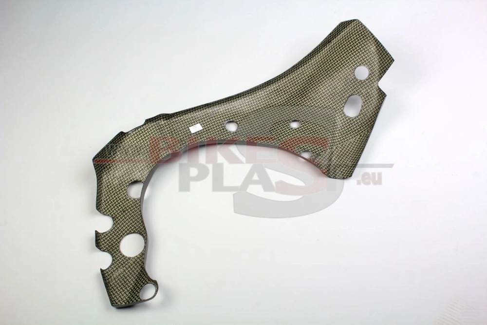 Die Rahmen und Schwinge Protections BIKESPLAST aus Echtcarbon schützen Ihr Motorrad von Kiese im Falle des Sturzes.