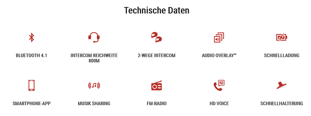 Die SF-Serie ist vollgepackt mit optimaler Funktionalität. Das SF2 bietet Bluetooth® 4.2-Konnektivität, Gegensprechanlage, Musikfreigabe, Audio-Overlay, FM-Radio und Sprachsteuerung.