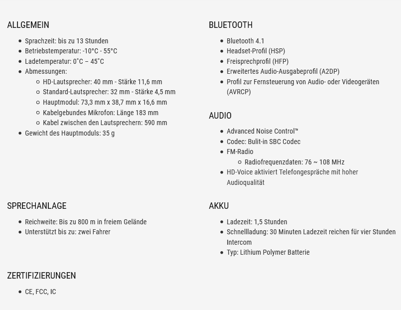 - Bluetooth 4.1 - Schnellbefestigung - 800m Gegensprechanlage - Zwei-Wege-Gespräch - Sprachsteuerung