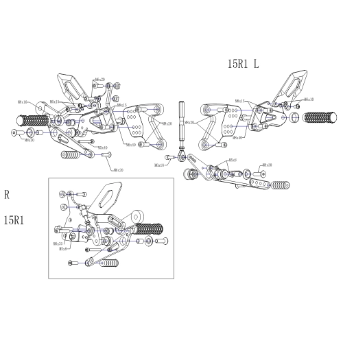 Verstellbar Fussrastenanlage Moto-Tron Racing Yamaha R1 2015-2021