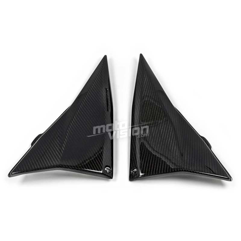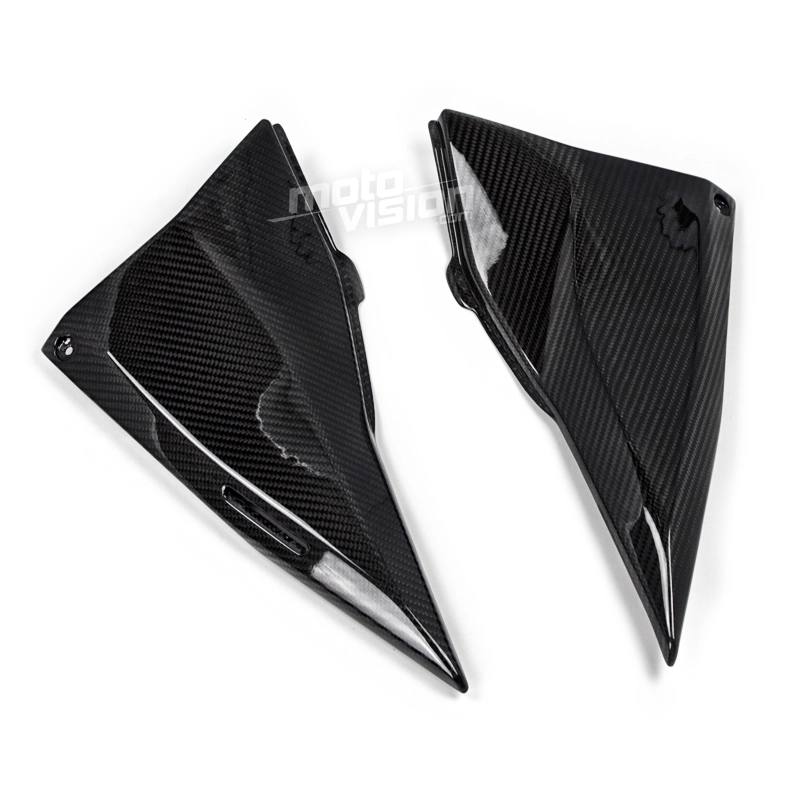Carbon Seiten Verkleidung Spitze Kawasaki Z750 2004-2006, geliefert ohne Schrauben oder andere Befestigungen. Die Bohrungen sind bereits an den Motorradverkleidungen aus Carbon angebracht. Die Teile sind mit glänzendem oder mattem Lack erhältlich.
