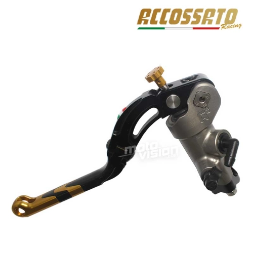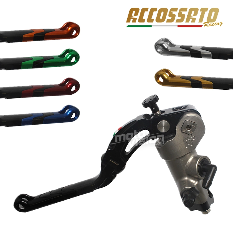 Wählen Sie Spitzenprodukte für das Bremssystem Ihres Motorrads mit den Accossato Kupplungsgeberzylindern mit Hebel Flip Up Typ Revolution - Aluminium CNC. Sie passen auf Lenker mit einem Durchmesser von 22 mm und Hebelarmen von 15 bis 17 mm dank des RPS-Systems auf 16 mm Kolben.