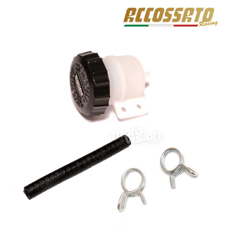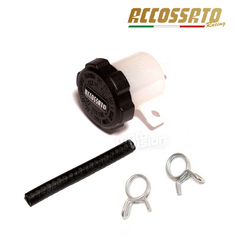 Ersetzen Sie Ihr Bremsglas durch dieses Komplettset für Bremsgläser der Marke Accossato, die sich auf Teile für Rennmotorräder spezialisiert hat. Das Set besteht aus einem Schlauch für das Bremsglas, Befestigungsclips für den Schlauch und einem Glas mit Bremsflüssigkeit, das in den Größen 15 ml oder 30 ml erhältlich ist.