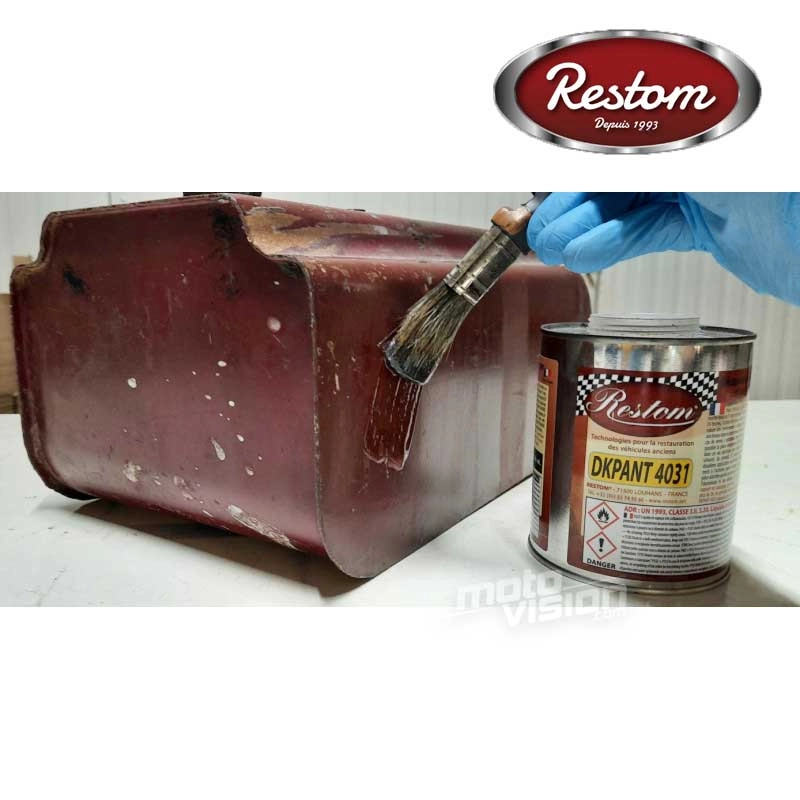 Restom DKPANT 4031 schwärzt Aluminium oder seine Legierungen nicht und ist nicht aggressiv gegenüber Metallen. Für die Verwendung auf Kunststoffen empfehlen wir eine Einwirkzeit von maximal 2 Stunden bei regelmäßiger Beobachtung. Restom DKPANT 4031 eignet sich auch zum Abbeizen von Beschichtungen im Tankinneren (Produkte von schlechter Qualität oder schlecht aufgetragenes Harz...), indem Sie das Abbeizverfahren befolgen. Das Produkt wird besonders empfohlen, um bituminöse Beschichtungen (Blackson ) von Unterböden einfach und ohne Brenner zu entfernen.
