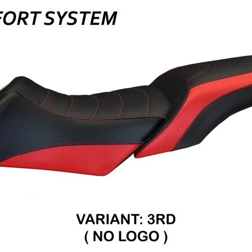 - Comfort system: Dieser Bezug ist außen exakt identisch mit allen anderen Bezügen, ist aber innen mit einer speziellen 2,5 cm dicken Schicht aus Memory-Schaumstoff gekoppelt. Tappezzeria Italia ist der einzige Hersteller, der die Memory Foam-Technologie verwendet, die den Fahrkomfort verbessert, indem sie Ermüdungserscheinungen und Vibrationen des Motorrads verringert.