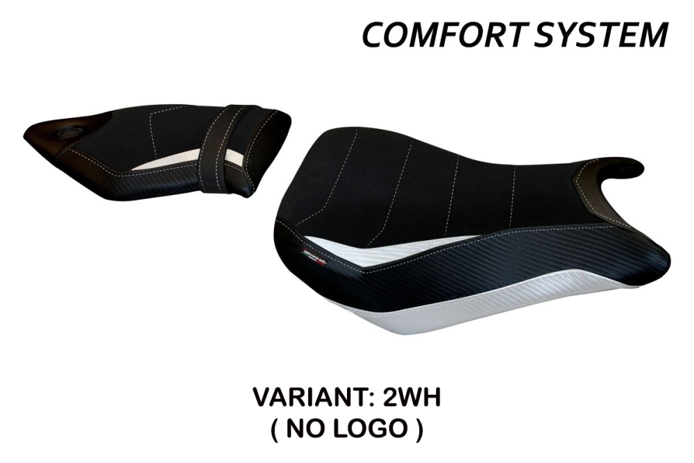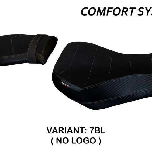 - Comfort system: Dieser Bezug ist außen exakt identisch mit allen anderen Bezügen, ist aber innen mit einer speziellen 2,5 cm dicken Schicht aus Memory-Schaumstoff gekoppelt. Tappezzeria Italia ist der einzige Hersteller, der die Memory Foam-Technologie verwendet, die den Fahrkomfort verbessert, indem sie Ermüdungserscheinungen und Vibrationen des Motorrads verringert.