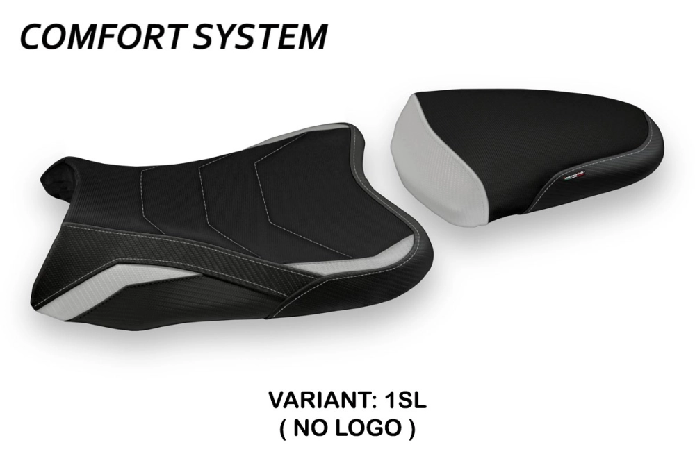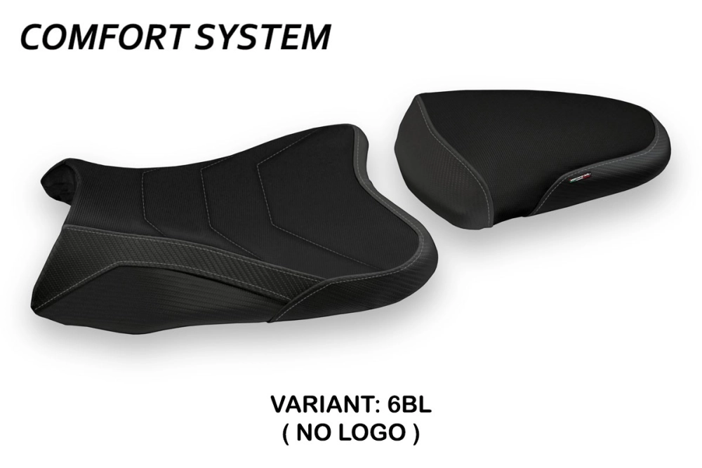 - Comfort system: Dieser Bezug ist außen exakt identisch mit allen anderen Bezügen, ist aber innen mit einer speziellen 2,5 cm dicken Schicht aus Memory-Schaumstoff gekoppelt. Tappezzeria Italia ist der einzige Hersteller, der die Memory Foam-Technologie verwendet, die den Fahrkomfort verbessert, indem sie Ermüdungserscheinungen und Vibrationen des Motorrads verringert.