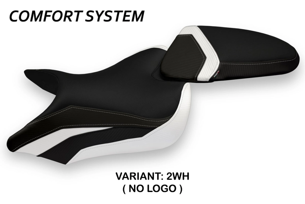- Comfort system: Dieser Bezug ist außen exakt identisch mit allen anderen Bezügen, ist aber innen mit einer speziellen 2,5 cm dicken Schicht aus Memory-Schaumstoff gekoppelt. Tappezzeria Italia ist der einzige Hersteller, der die Memory Foam-Technologie verwendet, die den Fahrkomfort verbessert, indem sie Ermüdungserscheinungen und Vibrationen des Motorrads verringert.