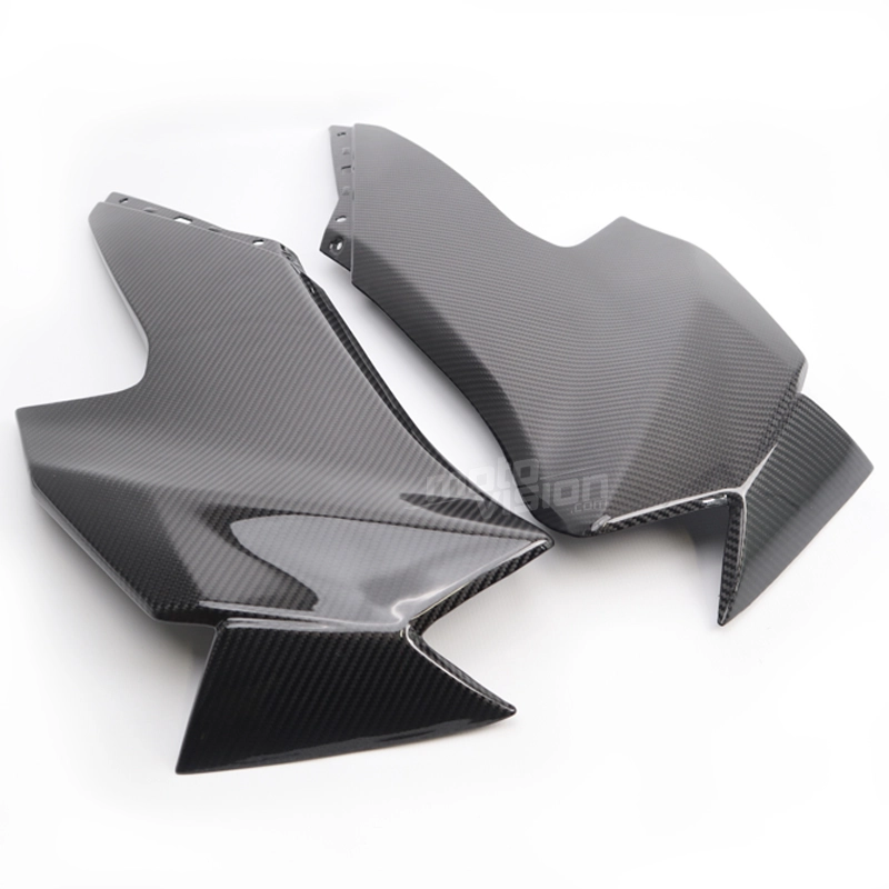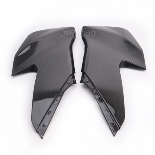 Paar Seitenverkleidungen Carbon Glanz Kawasaki ZX10R 2021- zur direkten Montage an den originalen Befestigungspunkten Ihres Motorrads als Ersatz für die originale Verkleidung. Die Carbonteile werden ohne Schrauben geliefert.