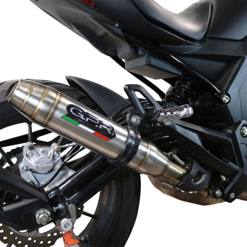 Die italienische Marke GPR Exhaust System hat sich auf Titan und Stahl spezialisiert und kann Ihre Benelli 502 C 2019 - 2020 mit dem Deeptone Inox, eine Homologierter Slip-On-Auspuff inklusive abnehmbarem DB Killer und Verbindungsrohr.