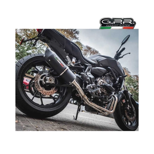 Die italienische Marke GPR Exhaust System hat sich auf Titan und Stahl spezialisiert und kann Ihre Husqvarna Svartpilen 401 2020 - 2020 mit dem Furore Evo4 Nero, eine Homologierter Slip-On-Auspuff inklusive abnehmbarem DB Killer und Verbindungsrohr.