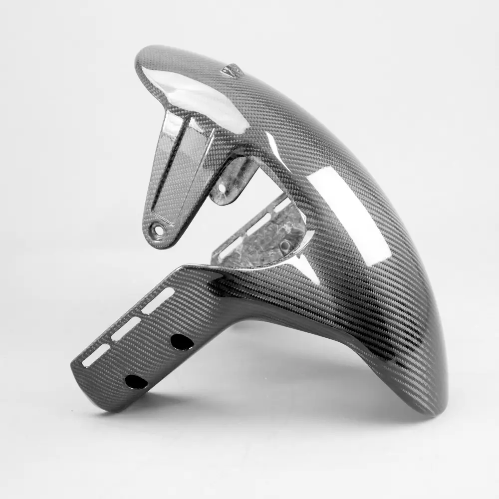 Carbon Frontkotflügel Ducati DesertX 2022-, geliefert ohne Schrauben oder andere Befestigungen. Die Bohrungen sind bereits an den Motorradverkleidungen aus Carbon angebracht. Die Teile sind mit glänzendem oder mattem Lack erhältlich.