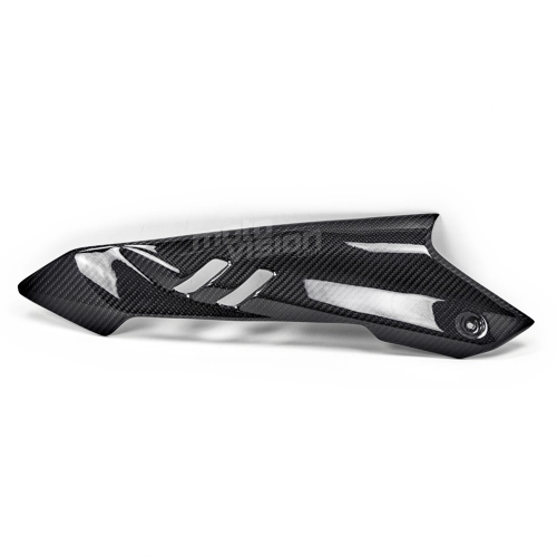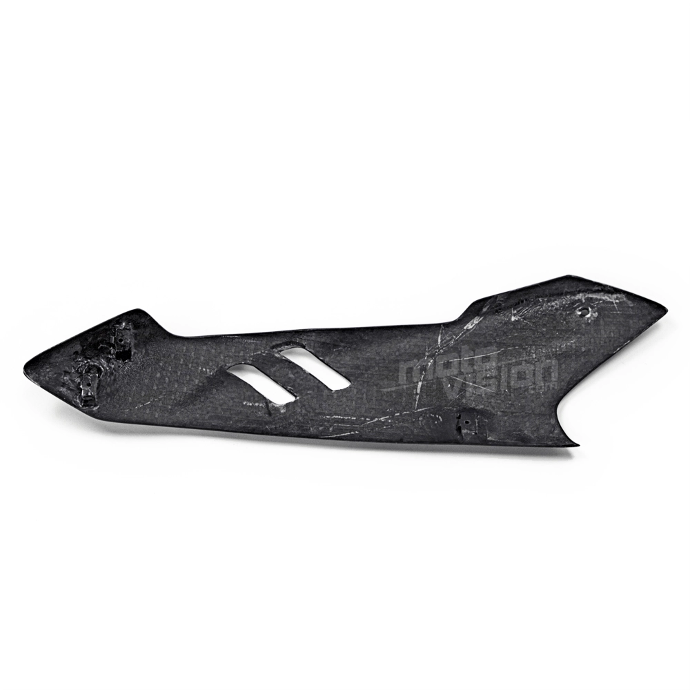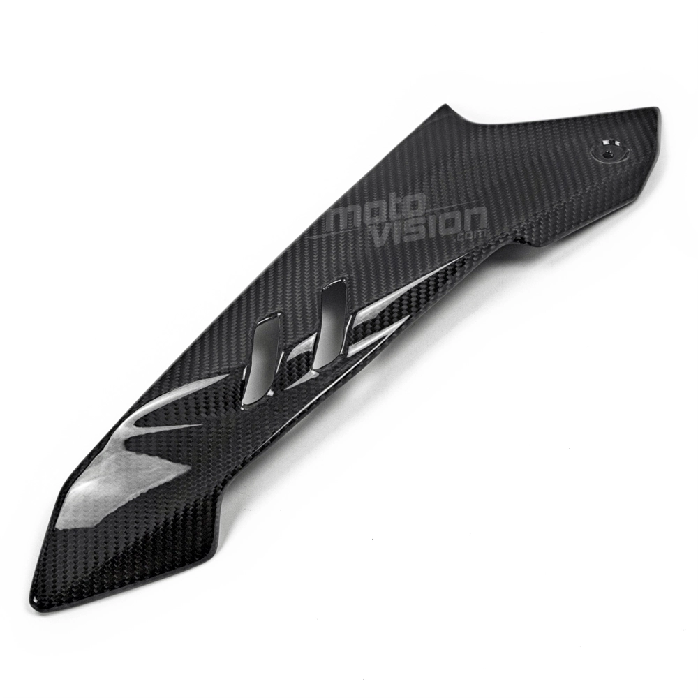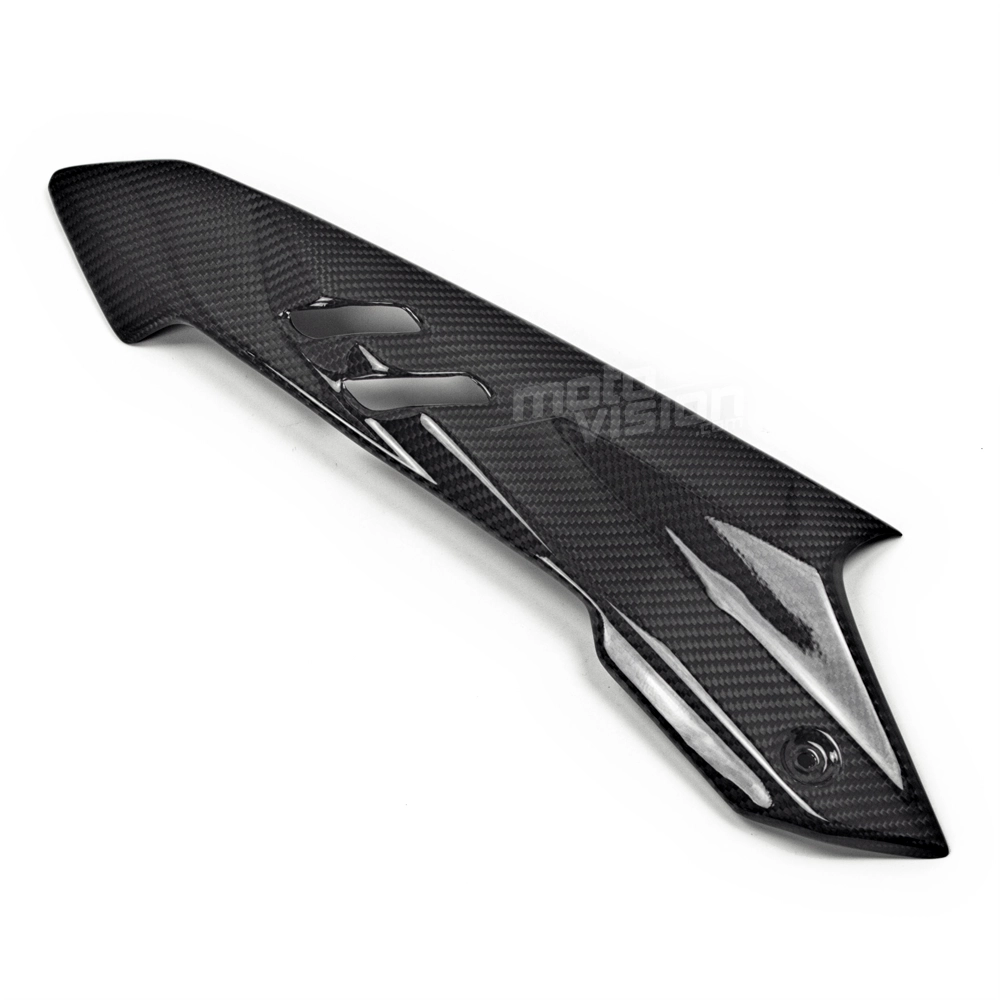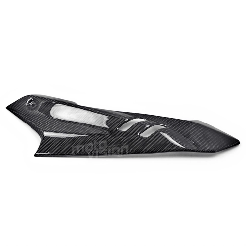 Carbon Katalysator-Abdeckung Triumph Speed Triple 1200 2021, geliefert ohne Schrauben oder andere Befestigungen. Die Bohrungen sind bereits an den Motorradverkleidungen aus Carbon angebracht. Die Teile sind mit glänzendem oder mattem Lack erhältlich.