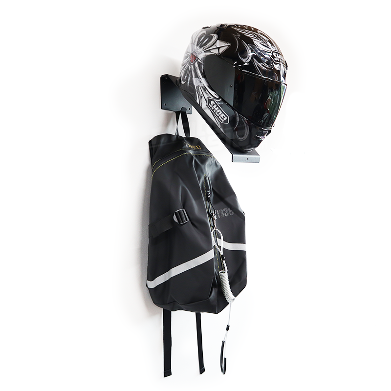 Helmhalter, der direkt an der Wand befestigt werden kann, um seine Motorradsachen einwandfrei zu verstauen. So können Sie Ihren Helm während der Überwinterung zu einem vollwertigen Dekorationselement Ihrer Wohnung oder Garage machen. Gleichzeitig kann er flach liegen bleiben, um Kratzer auf dem Visier zu vermeiden.