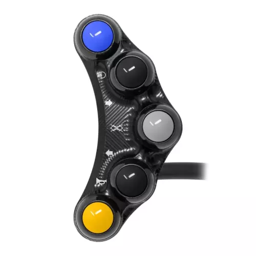 Jetprime linke Schaltereinheit mit 5 Tasten, Originaltyp Ducati Monster 796, 1100 und 1100S., spezifisch für die als kompatibel angegebenen Motorräder. Er ist robuster und leichter als das Originalteil und ermöglicht eine schnelle, intuitive und sichere Steuerung der wesentlichen Funktionen, ohne den Fahrer abzulenken oder seine Fahrposition zu verändern.