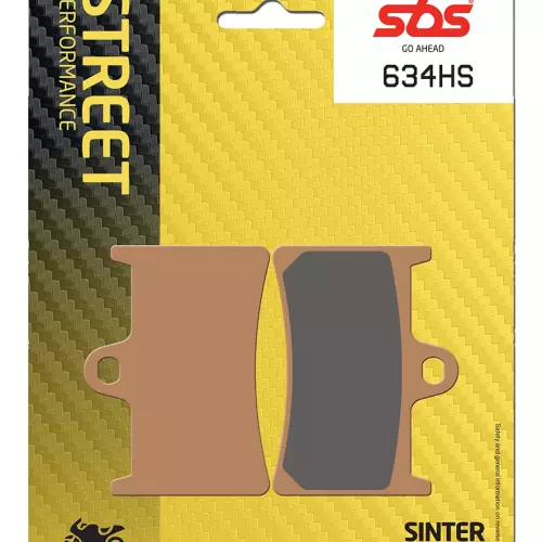 Paar Bremsbeläge SBS 634 (HS) für Motorräder mit Sintermetallbelägen vorne als Originalausstattung. Sie sind Teil des Street Sinter-Sortiments - Sintermetall vorne.
