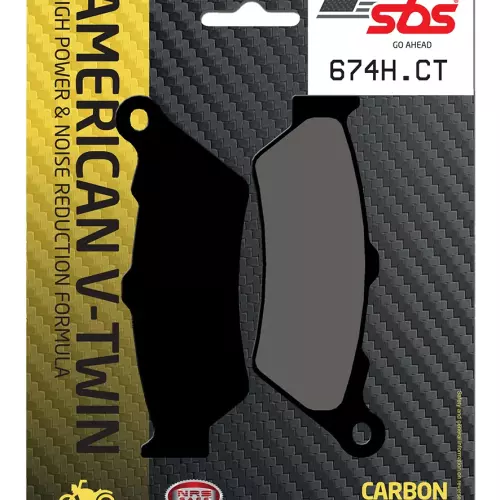Paar Bremsbeläge SBS 674H.CT aus der Carbon Tech Motorrad-Roller-Reihe, die für Mittelstreckenfahrten, Hochleistungsroller, die für tägliche Fahrten bei "sportlicher Fahrweise" und in der Freizeit eingesetzt werden, bestimmt ist.