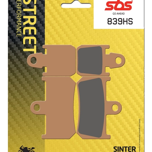 Paar Bremsbeläge SBS 839 (HS) für Motorräder mit Sintermetallbelägen vorne als Originalausstattung. Sie sind Teil des Street Sinter-Sortiments - Sintermetall vorne.