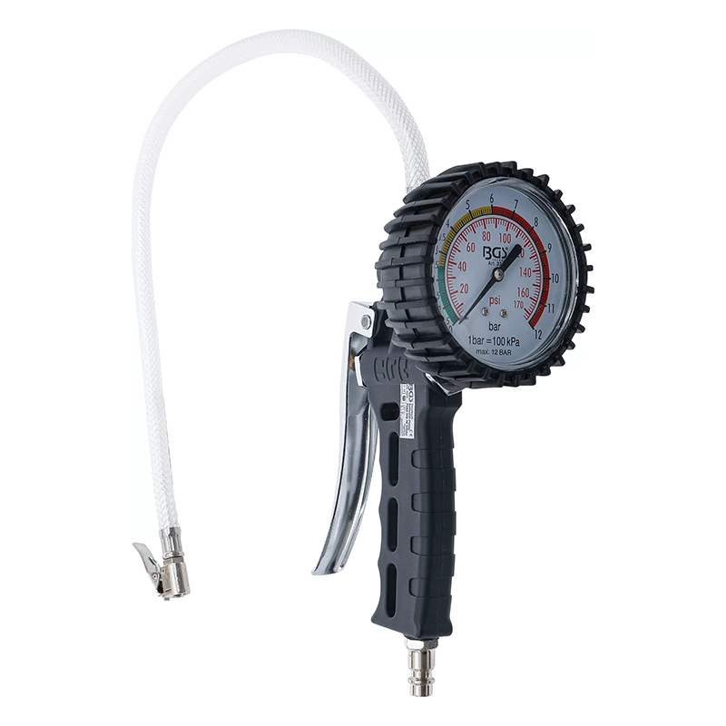 Pneumatische Reifenfüllpistole| 0 - 12 bar BGS, um Ihre Reifen richtig aufzupumpen und Ihnen ein besseres Handling zu ermöglichen, was für eine sichere Fahrt, insbesondere bei Kurvenfahrten und Ausweichmanövern, von entscheidender Bedeutung ist.
